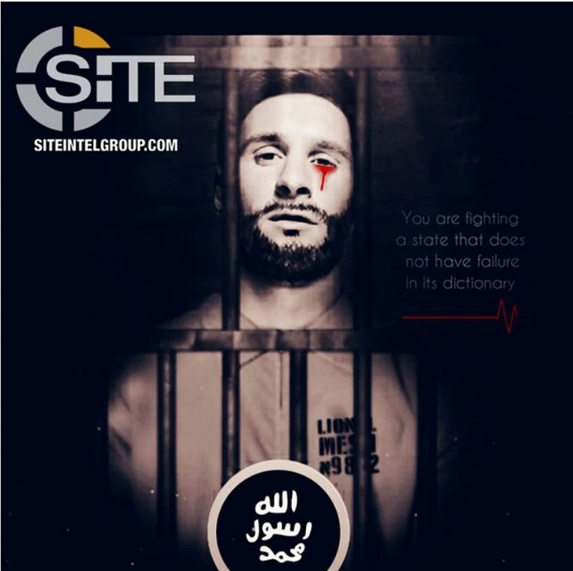 ארגון שקשור לדאעש פרסם את התמונה הנוראית הזאת של מסי במדי אסיר ומדמם כשהוא מאיים על תחרויות הכדורגל ברוסיה