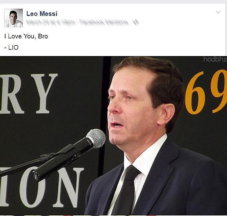 ראשיתו של הסיפור הספק הזוי, ספק משעשע הזה הבוקר, כשעמוד הפייסבוק של הרצוג העלה פוסט ובו הוא כביכול מעודד את עצמו ואת ידידו הדמיוני, כוכב הכדורגל ליאונל מסי (בעקבות ההפסד של ברצלונה קבוצתו אמש)באומרו: "עוברים עלי ימים לא קלים. על שנינו. נעבור את זה". המונולוג הפנימי והפיוטי הזה עלה לאויר ביחד עם תמונתו של הכדורגלן המהולל ומכאן הרשת התחילה לחגוג (שהרי מדובר בכדור שממש "הורם להנחתה" על ידי פוליטיקאי חבוט במיוחד) ריכזנו עבורכם את מיטב התגובות והמים שחוגגים את כוכב הרשת הטרי: