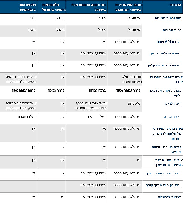 כדי לייצר השוואה בין הפתרונות, בנינו טבלה אשר מגדירה את העלויות והיכולות השונות על פני הפתרונות השונים בישראל ובעולם.