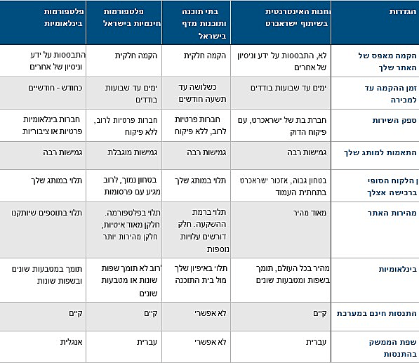 השוואה בין סוגי הפתרונות