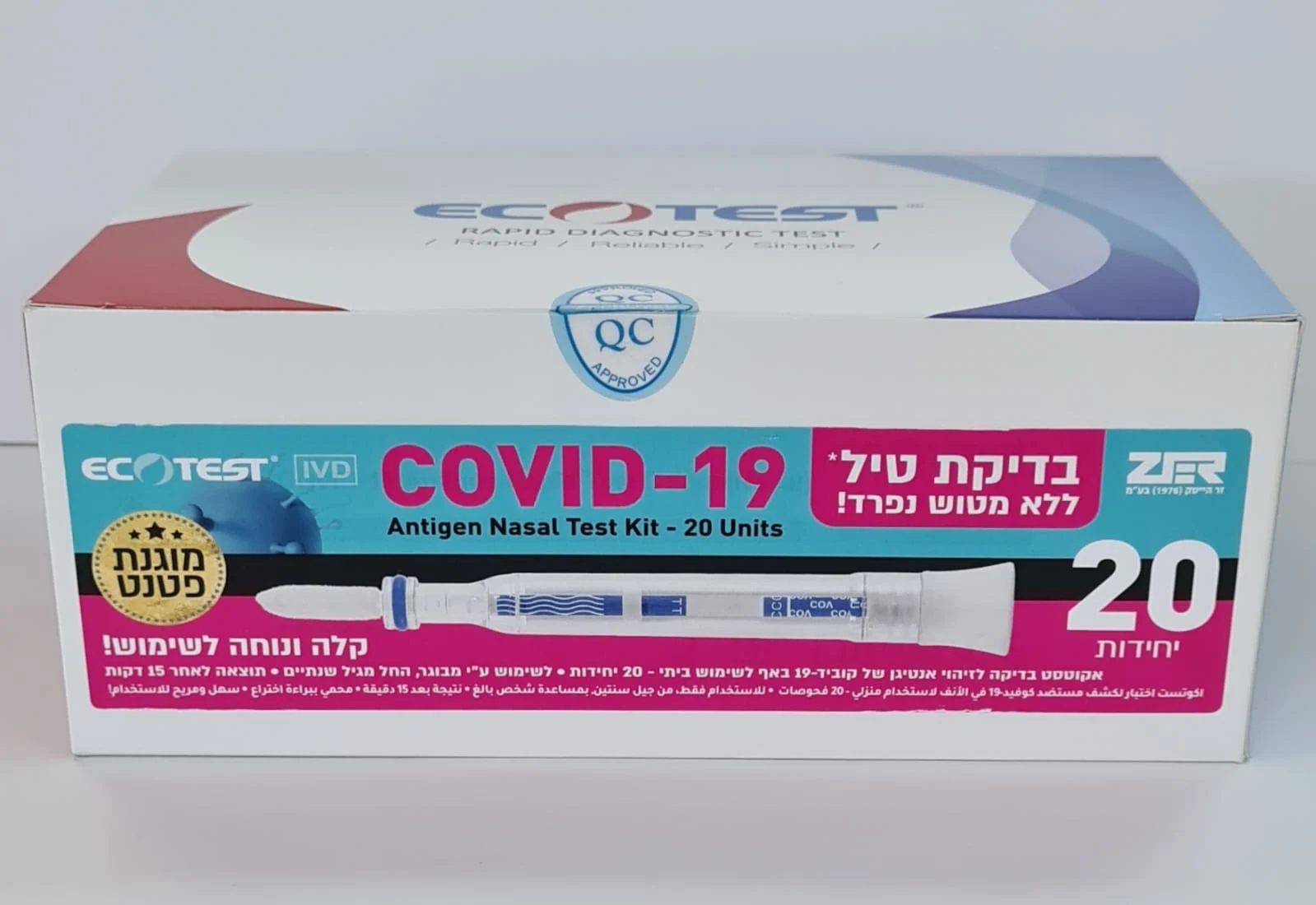 20 יחידות של בדיקות קורונה ביתיות ECOTEST דגם ׳טיל' עבור משפחות, חברות וארגונים. 240 ₪. לרכישה מאתר 'שראל פארם'