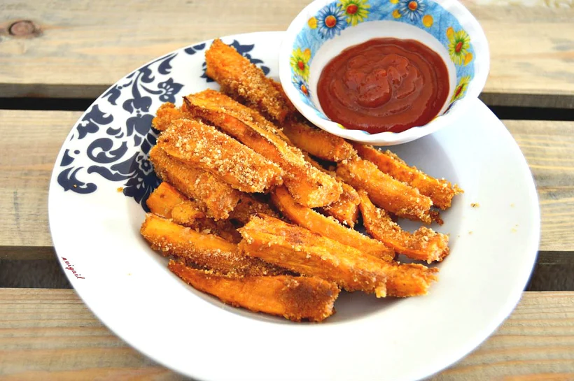 פלחי בטטה רכים מבפנים וקריספיים מבחוץ עם שחקן חיזוק מעולמות השניצל, וכל זה עם כמות מזערית של שמן זית ואפייה שהופכת את המעטפת לפצצת פריכות קולנית. המנה שתגרום לכם לזנוח את הצי'פס המסורתי ולבחור באופציה המתוקה. המתכון המלא כאן.