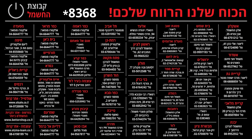 לפרטים נוספים, ניתן להיכנס לאתר הבית של קבוצת חשמל , לדף הפייסבוק או להתקשר לטלפון 8368*.