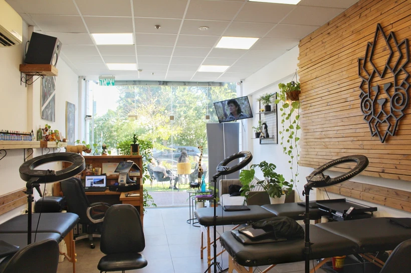 בתוך חלל פתוח וגדול ישבו חמישה מקעקעים, עסוקים בעבודה, ברקע התנגנה לה מוזיקה קצבית, מסביב עציצים רבים, רוב הקירות היו מעץ, מקושטים בצורות וציורים בשלל צבעים שמעניקים הרגשה קוסמית מיוחדת, תכף ומיד הבנתי שלא מדובר בעוד מכון קעקועים רגיל, אלא שהחבר'ה הביאו לפה בשורה וסגנון חדשים לגמרי.