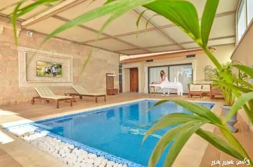 במתחם בריכת שחיה מחוממת ומקורה המתאימה לכל עונות השנה. הבריכה גדולה, מרשימה ומעוצבת ברמה גבוהה ביותר – אם אלו האדים החמים בחורף, רצפת הפסיפס וחלוקי הנחל, מיטות השיזוף ופינות הישיבה, מסך הטלוויזיה, שולחן הפינג פונג וכמובן הנוף המרהיב.