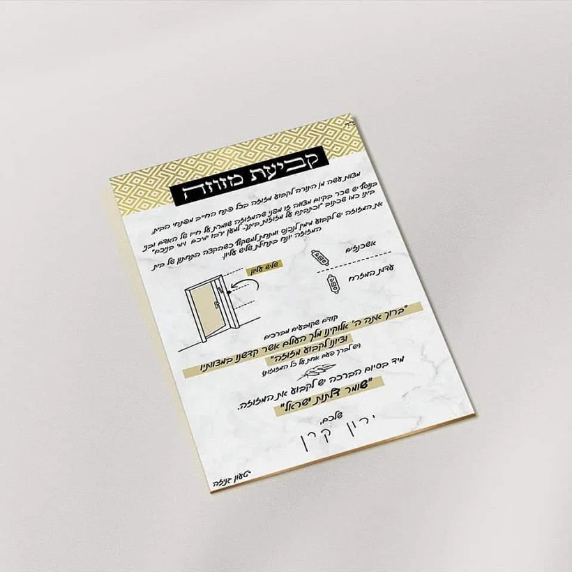 "מעבר לפעילות הרגילה שלי, כחלק מהמארז הוצאתי כרטיסים מיוחדים, עם הסבר מפורט ומעניין, כך שכל אחד יוכל לדעת את הברכה שמברכים כאשר קובעים את המזוזה על המשקוף, והמחשה ע"י ציור כדי לדעת היכן למקם את המזוזה בדיוק המירבי מבחינה הלכתית.