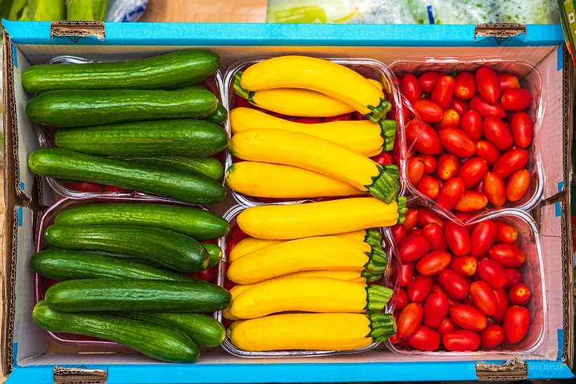 שלל ירקות, פירות ומוצרים נוספים - והכל טבעוני!