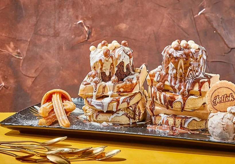 בתפריט שלנו תמצאו פנקייקים תפוחים ואוורירים, וופל בלגי בטעמים מפצפצים בפה, צ'ורוס מתוקים, עוגת שכבות וקוקילידה. בנוסף, כל אחד מהקינוחים האלה עוטפים תועפות של ציפויי שוקולד ייחודיים על בסיס שוקולדים ומתוקים אהובים.