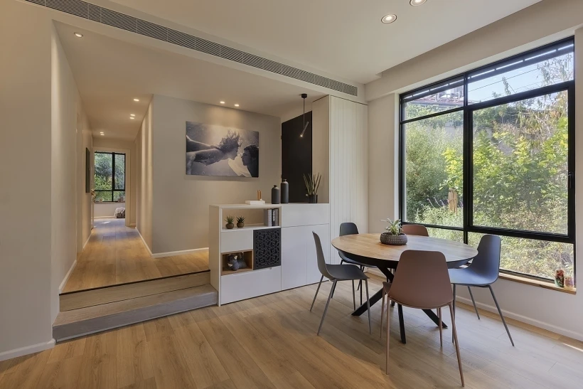"זה היה פרויקט בשכונת רמת אביב הירוקה - שזו שכונה בתל אביב שיש בה המון בתים דו ותלת קומתיים. הלקוחות שלי היו זוג צעיר עם שתי בנות. הם קנו שם דירת גן קטנה שהרחבנו - הפכנו אותה לדירה של 110 מטר עם גינה וכניסה נפרדת, משהו שמרגיש יותר כמו בית פרטי. עם פתיחת החלל והרחבת החלונות יצרנו קצת אווירה של קיבוץ אפילו. עברנו מסע מאוד ארוך, שכלל גם המון יועצים, אדריכלים, מפקח, קבלן ושלל אנשי מקצוע, וכל התהליך, כולל הוצאת ההיתר, ארך בסביבות השנה וחצי-שנתיים.