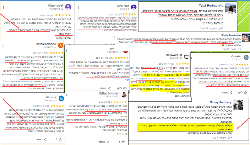 מתוך  שלל ההמלצות על 'אקסלנט', בולט הציון לטובה שלקוחותיך מציינים על הקורס אונליין, במה דברים אמורים?