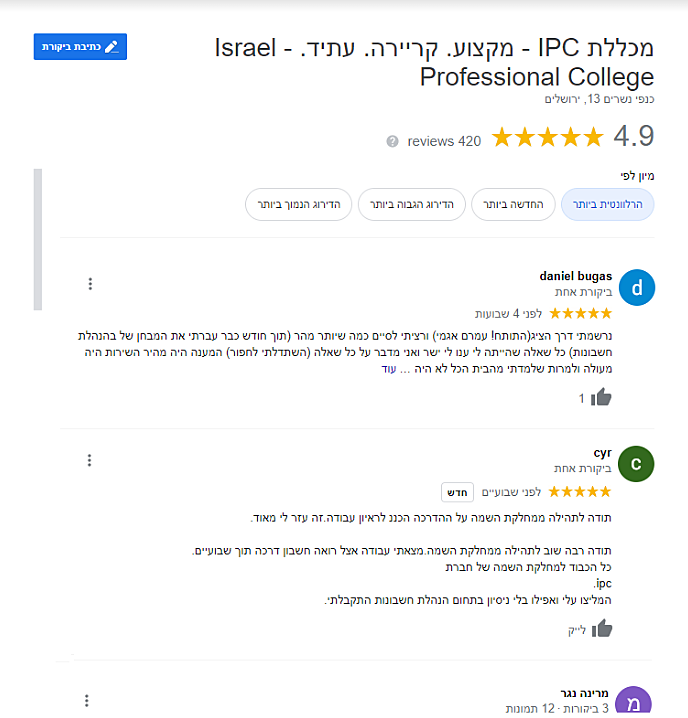 מכללת IPC: ליווי מקצועי מתחילת הקורס וגם לאחר שהוא מסתיים