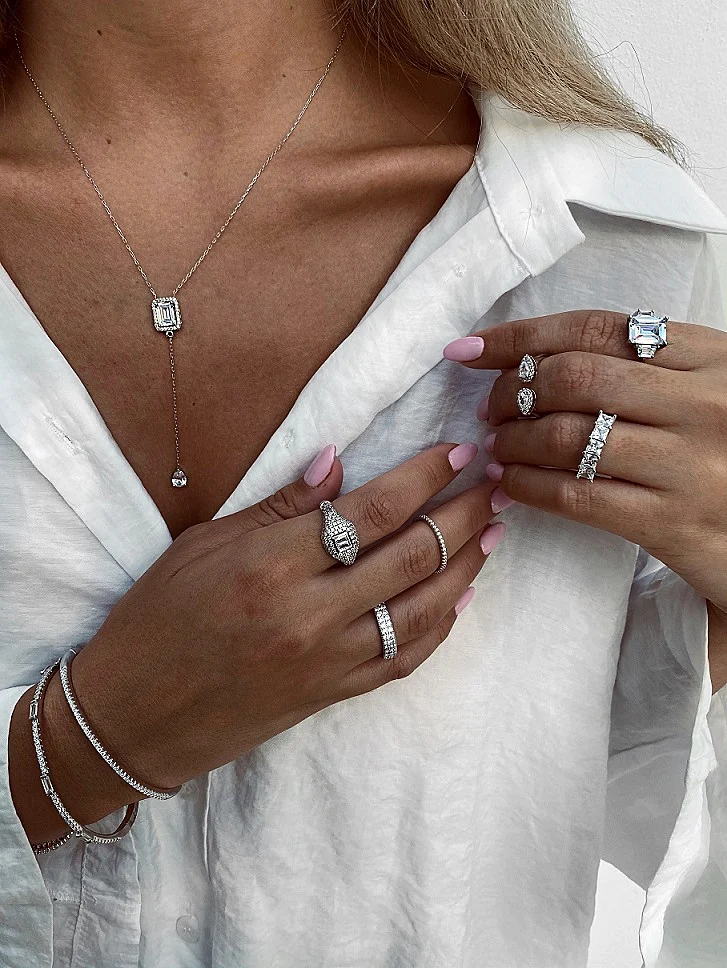 "בעיקר מכסף טהור (925) ועם אחריות לשנה, במקום 3 חודשים אצל רבים אחרים. המיוחד אצלנו זו האפשרות לבחור כל תכשיט גם בצבעים נוספים כמו 'גולדפילד' או 'רוז גולד', או בשילוב אבני סברובסקי. מה שמאפשר התאמה אישית לכל לקוחה. העיצובים הם לנשים בלבד. הקו המרכזי הוא כסף טהור, אך בשילוב תכשיטי אופנה. שילוב מנצח".