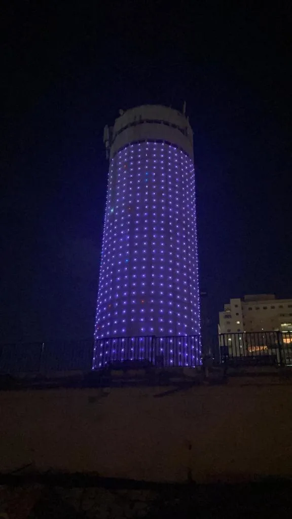 מגדל המים קרית אונו מואר בסגול למען שוויון הזדמנויות בשוק התעסוקה | צילום: צילום באדיבות העיריה
