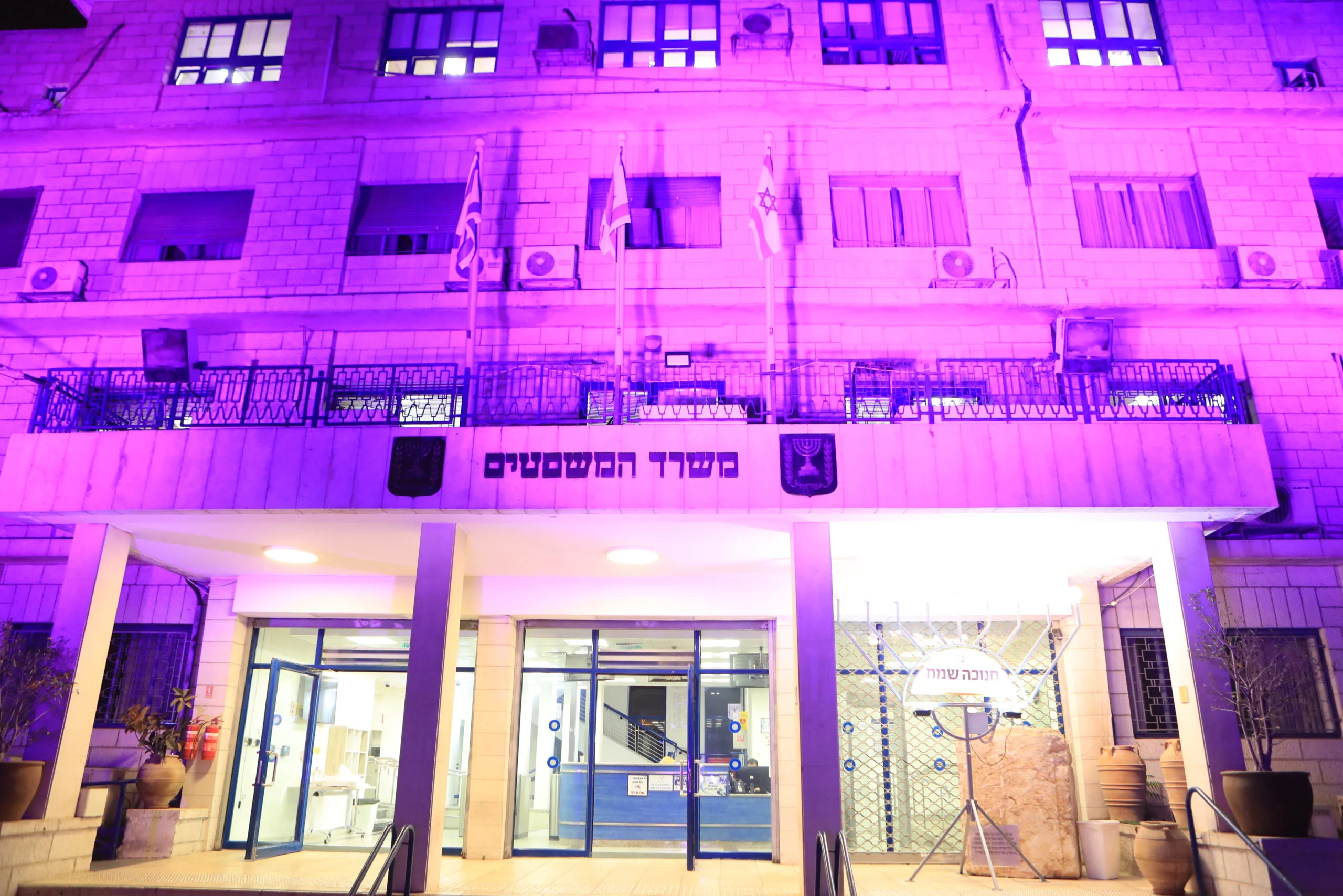 משרד המשפטים בירושלים מואר בסגול למען שוויון הזדמנויות בשוק התעסוקה | צילום: צילום ישראל שוורץ