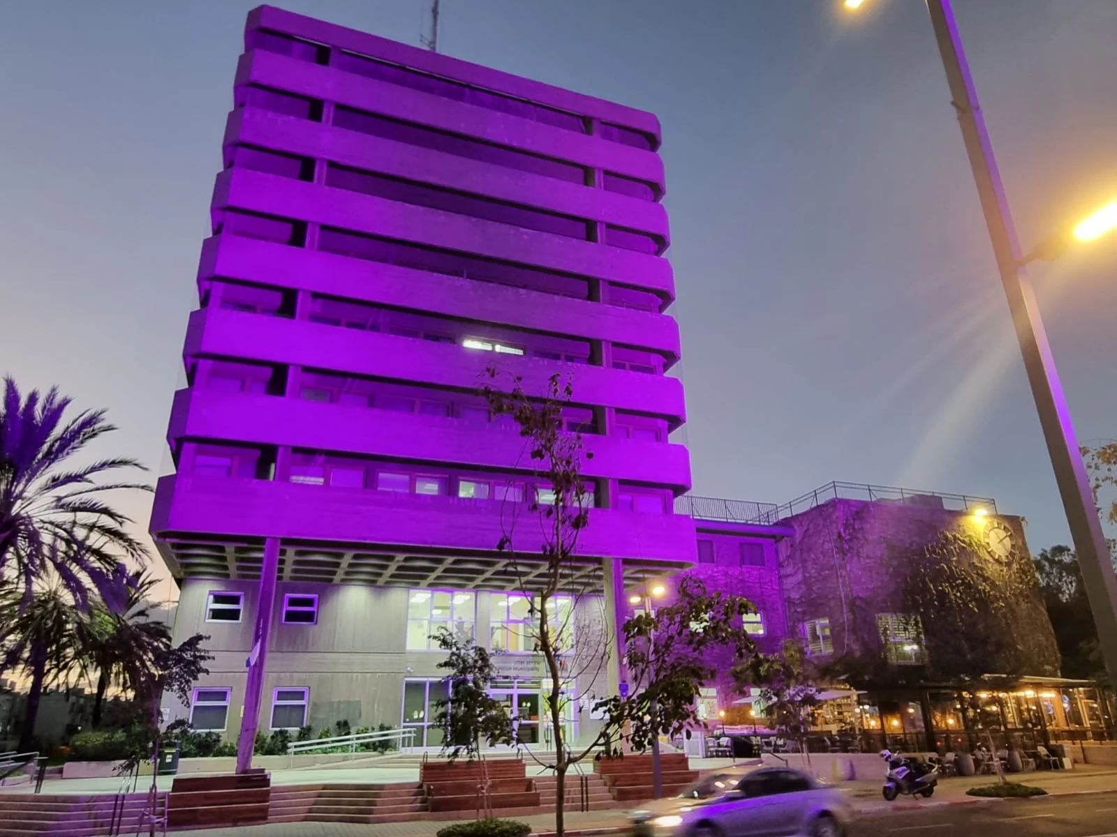 בניי הקריה מואר בסגול למען שוויון הזדמנויות בשוק התעסוקה | צילום: דו''צ