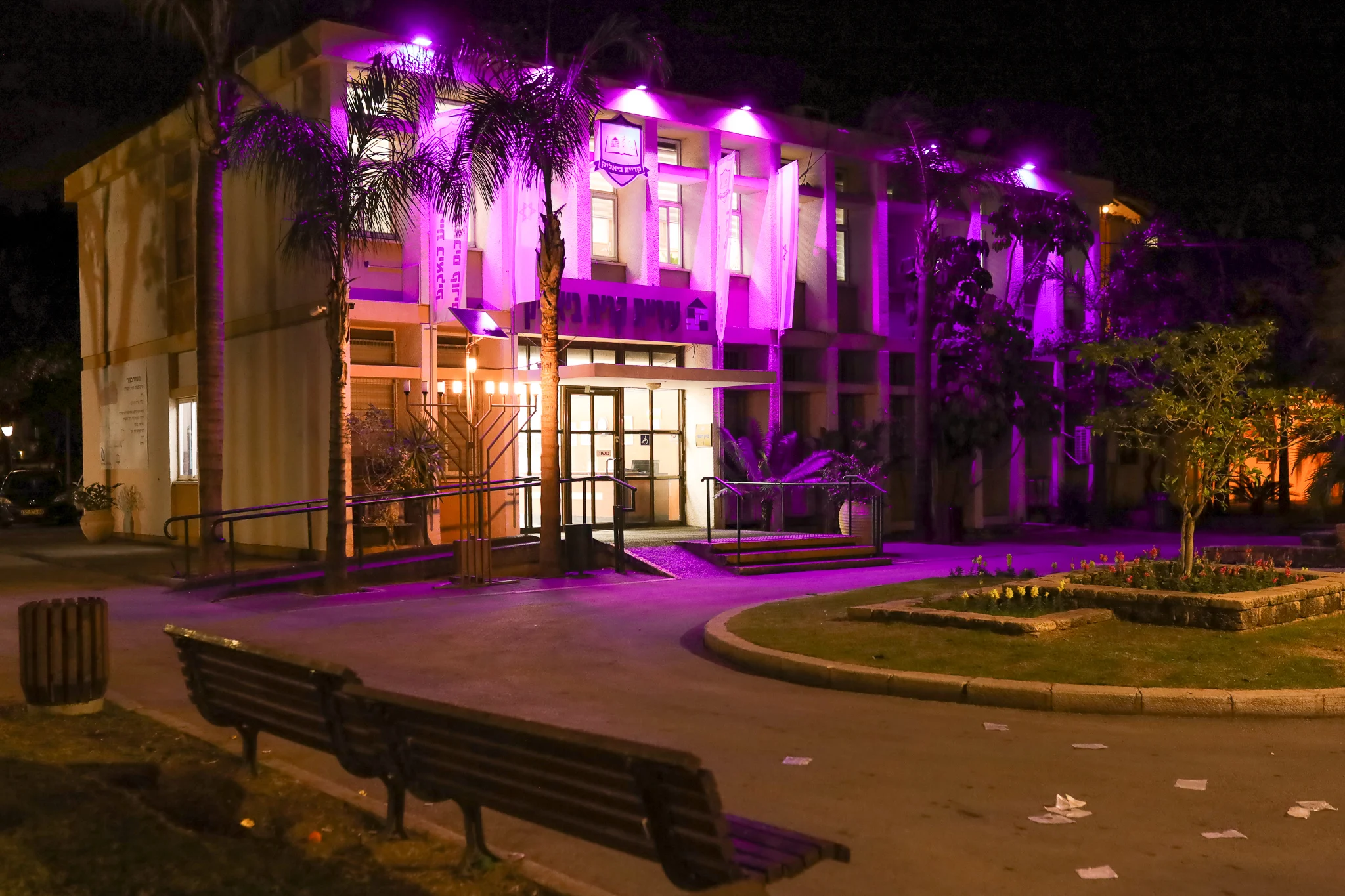 בניין עיריית בת ים מואר בסגול למען שוויון הזדמנויות בשוק התעסוקה | צילום: צילום באדיבות העיריה