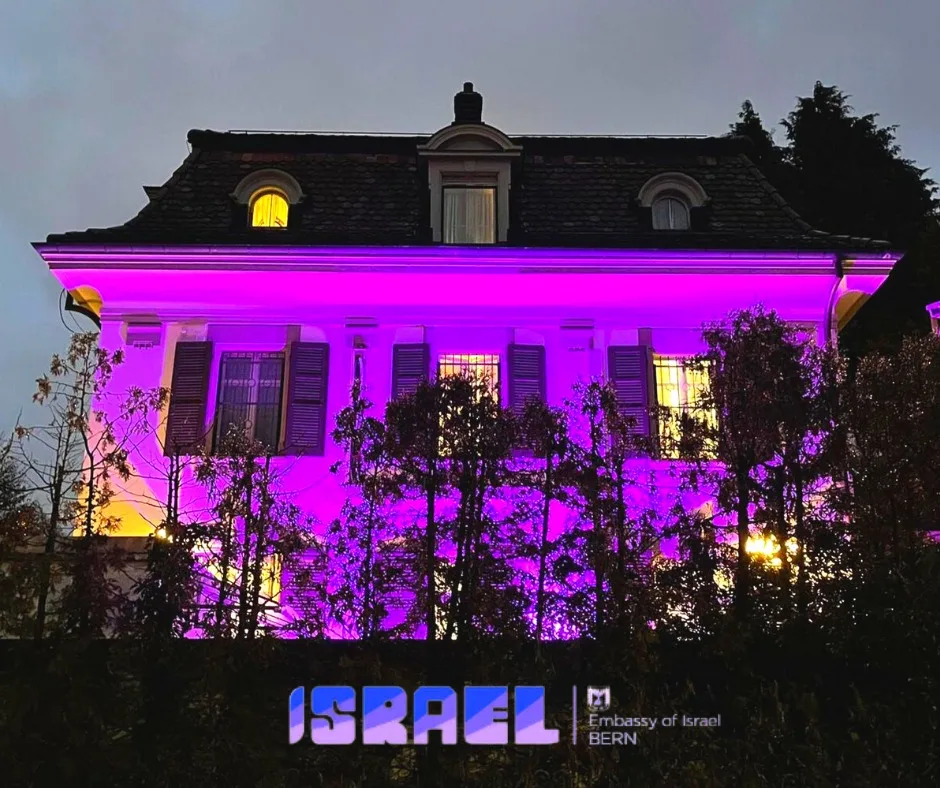שגרירות ישראל בלונדון מוארת בסגול למען שוויון הזדמנויות בשוק התעסוקה | צילום: צילום משרד החוץ