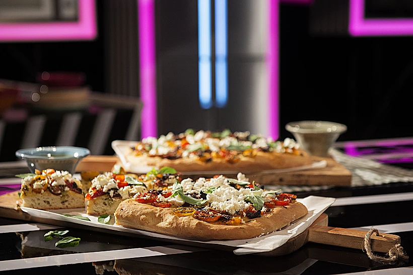 אהרוני מכין פוקאצ'ה ביתית שכל אחד יאהב, עם תוספת של עגבניות, תבלינים וגבינה בולגרית