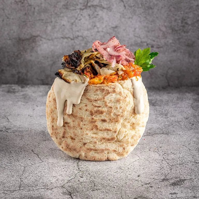 במקום ששם את הירקות בקדמת הבמה, מנת הכרובית בפיתה היא הברקה אמיתית שמוציאה את הכרובית מהמקום הקלישאתי והופכת אותה לביס בשרני מפתיע. הכרובית בפיתה היא חיבור טעים בין 2 חצאי פיתה שמנמנה ורכה, לכרובית אפויה שפורקה לצ'אנקים גדולים והוקפצה עם בצל ותבלינים ממשפחת הכורכום-כמון עד קרימול מלא ג'וס וטעם. כל הטוב הזה נכנס לפיתה יחד עם טחינה, עמבה וסלט קצוץ. הביס משגע, עתיר מרקמים וטעמים שמזכירים שווארמה, רק במרקם עדין ונעים יותר. היות שמדובר בשני חצאי פיתות ממולאות בנדיבות, המנה סופר משביעה, ותעמנוג אמיתי לאכול אותה כשהרטבים מתפרצים החוצה ונוטפים לעבר הסנטר.