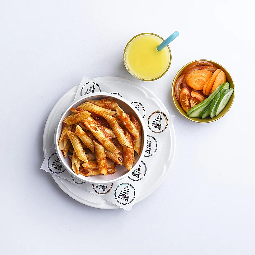 פסטלינה: פסטה פנה ברוטב עגבניות/אלפרדו וירקות טריים ושוקו או מיץ (29 שקלים).