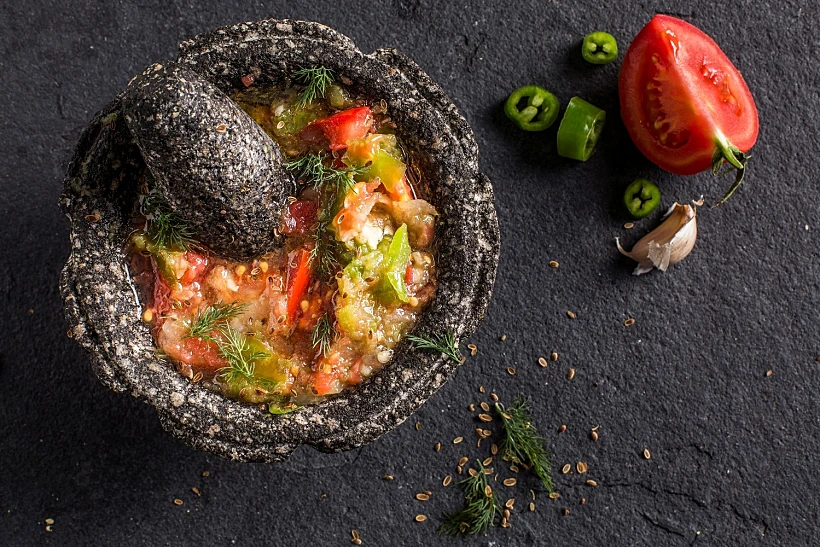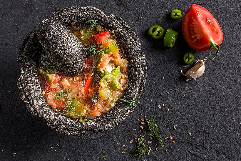 דקה ע'זאוויה - דק פירושו כתש, ללמד שמכינים אותו במכתש ועלי. בזה אחר זה כותשים בצל, שום, פלפל חריף, זרעי שמיר ועגבניות. עשרה פלפלים על כל 4 עגבניות, ככה העזתים אוהבים את הסלט שלהם.