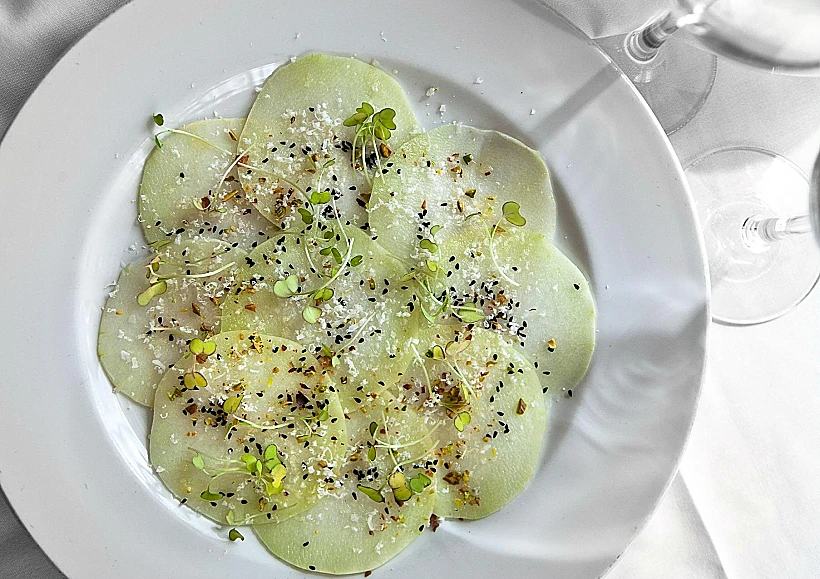 הבופה הרחב משלב בין מנות קלאסיות דוגמת שקשוקה, ביצים קשות ומבחר נאה של גבינות, למנות טבעוניות, כולל תבשיל גריסים שמוגש בבוקר, גבינה טבעונית, מעדנים על בסיס סויה וגם חלב שקדים או אורז. מי שאינו טבעוני יוכל להסתער על אגף ה"פינגר פוד" ובו מיני כוסות במילוי גבינות, סלמון מעושן, נבטים ושאר ירקות. כמו בכל בופה בית מלוני, גם כאן תמצאו בר סלטים עשיר, עם ממרחים מגוונים דוגמת ארטישוק וטחינה מעולה, מגוון גרעינים וזרעונים לפזר על הסלט, וגם עמדה נחשקת לא פחות עם חומוס, טחינה ופול חם ששופכים על הכל. לילדים יש מעדנים, מגוון דגני בוקר, ג'חנון בימי שבת, בורקסים ושוקו קר או חם. אם ישאר לכם מקום בבטן, לכו על עוגת השוקולד החמה עם לב השוקולד הנמס.