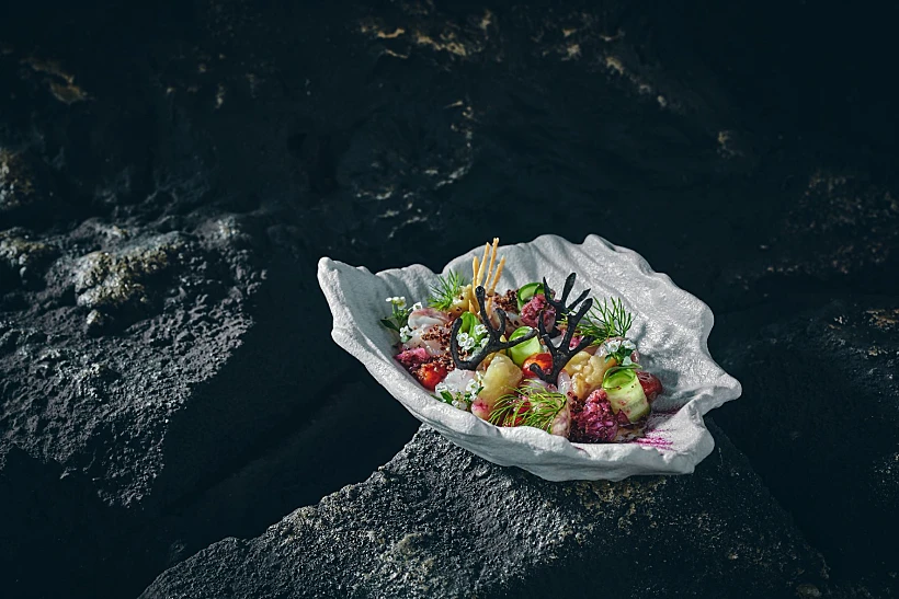מאגף הקרודו אל תפספסו את הסשימי טונה עם חרדל, אמרנה, סורבה חרדל ושמומום (72 שקלים), ומנה נהדרת של טרטר טונה על ברוסקטה עם ביצה רכה, טחינה, סקורדליה וקרם שקדים ושמיר כמרק צונן שמלווה כל ביס (72 שקלים). מאגף הירקות שווה ללכת על הסלט ירוק סגול (58 שקלים), שמחבר בין כמה סוגי חסה, הדרים, סלק צלוי, אבקת סלק, גבינת קשיו דבש-טימין ופיצוחים במייפל. אוהבי הבשר יתעלפו על נתח אנטריקוט עם גזרים מזוגגים או צלעות טלה עם גזרים צבעוניים וקרם שום (284 שקלים). אגף המתוקים מוקדש כולל קלאסיקות דוגמת מילפיי ופנקוטה בפרשנויות שונות, וגם ברד פודינג שוקולד מושחת, שמורכב מקרעי קרואסון עם קרם פטיסייר ורוטב שוקולד מלוח (58 שקלים).