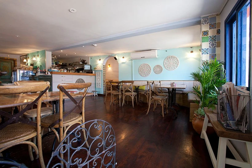 לבית קפה טורקיז בבית יצחק נוף אירופאי קלאסי וקסום. כאשר אתם מגיעים, תוכלו להסתובב בין חנויות העיצוב הסמוכות, לשבת על מרפסת העץ המקורה או להשתרע בסלון המעוצב בסגנון מרוקאי.