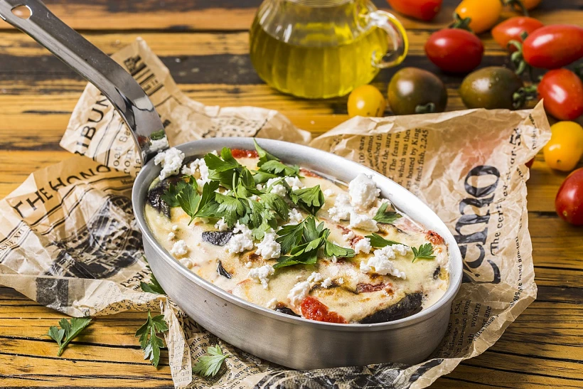 2. מוסקה מוצרלה, חצילים וגבינת עיזים