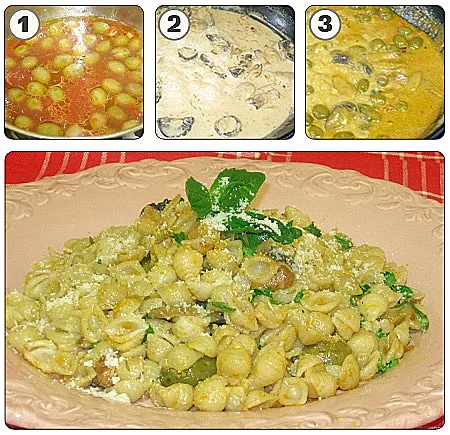 פסטה קונכיות עם זיתים ורוטב פטריות