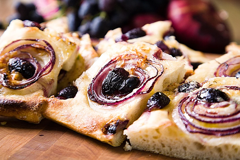 פוקצ'ה עם גבינה כחולה ובצל סגול