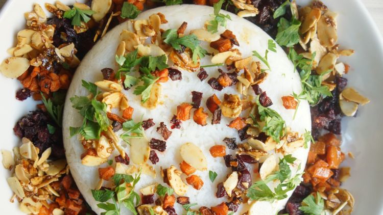 אורז מקושט בריבועי סלק ודלעת צלויים