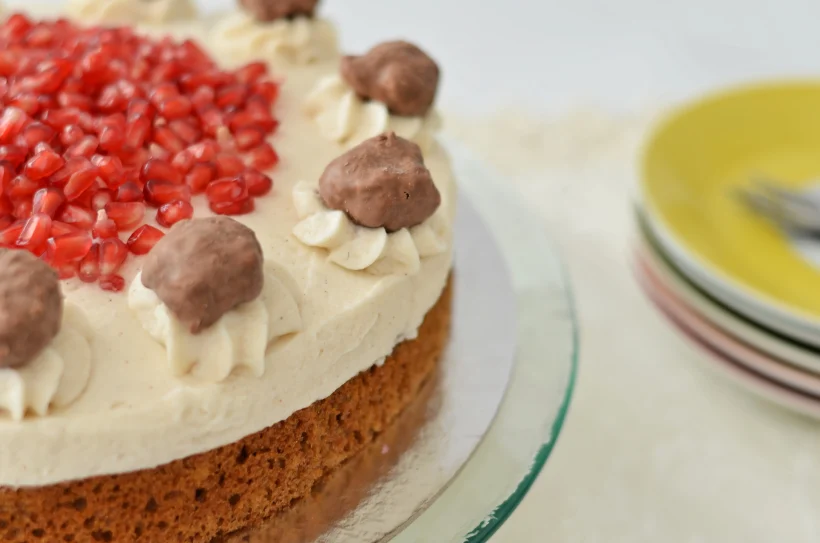 נתחיל מעוגת הדבש שנותנת את מלוא הרושם במינימום מאמץ. עוגת דבש בחושה עם קרם דבש, קינמון והכל בעיטור גרגרי רימון.