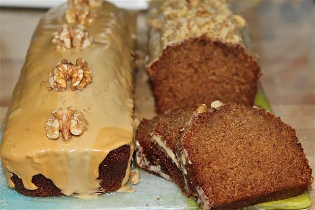 עוגת דבש בחושה, שחומה ומתוקה עם בוסט של קפה חזק וכפית של קקאו איכותי בכדי להעשיר את הצבע והטעם של העוגה. מלמעלה מפזרים אגוזי מלך ושקדים קצוצים שמוסיפים קרנצ'יות וטעם לעוגה.