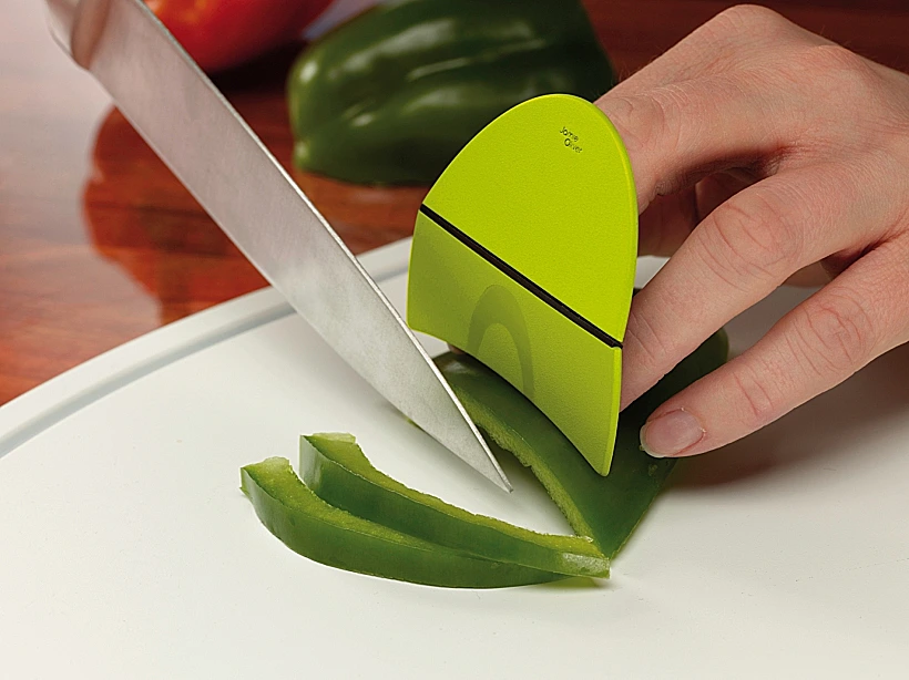 מגן אצבעות מסיליקון המיועד להפחית את הסכנה הנשקפת לאצבעות בעת חיתוך עם סכין. המגן מתלבש על שתי האצבעות של היד האוחזת במזון בזמן החיתוך ושומר על האצבעות מכל משמר. מחיר: 29.90 ש"ח, להשיג ב: רשת 4chef.