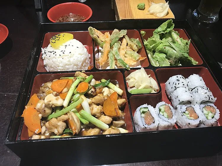 בעודי מתלבט בין האפשרויות, הסבו את תשומת ליבי לצידו השני של התפריט: ארוחות בנטו בוקס. לקופסת בנטו אפשר להתייחס כמו אל הגרסה היפנית לחמגשית מחולקת לתאים, אבל שיטת ההגשה הזו, נולדה ביפן בסוף המאה ה-16 של האלף הקודם ובמאה ה-19החלו קופסאות בנטו להימכר בתחנות רכבת, לנוחות הנוסעים. אני מכיר אנשים שמוכנים לקפוץ מרכבת נוסעת אם מישהו מקלף קלמנטינה בקרון, מעניין איך הם היו מגיבים לריחות של ארוחה שלמה.